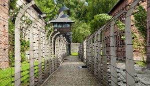 - The famous main gate with the inscription “Arbeit macht frei”